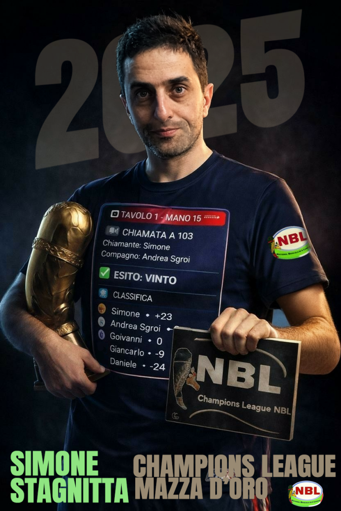 Una stagione da incorniciare quella di Simone: campione Champions League, vincitore della 24 Ore, primo nel Ranking NBL dopo 15 anni e leader della NBL Race. Il poker d’assi che ha convinto alcuni tra i 18 votanti a premiarlo con il trofeo più ambito, quello forgiato dalle mani di Silvio Sciuto che rappresenta l’eccellenza assoluta della Briscola in 5.